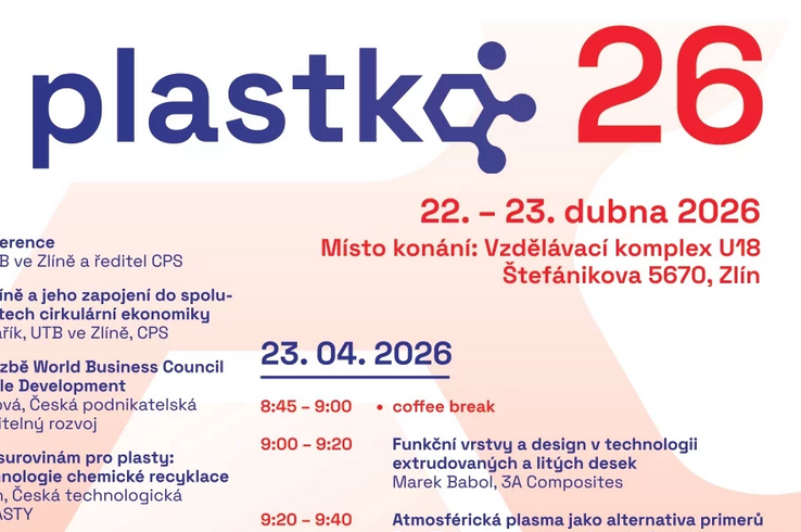 Srdečně vás zveme na odbornou konferenci PLASTKO 2026, která patří mezi významná setkání odborníků v oblasti zpracování plastů, materiálového výzkumu a polymerních technologií. Konference se koná 22.-23. 4. 2026 ve ...
